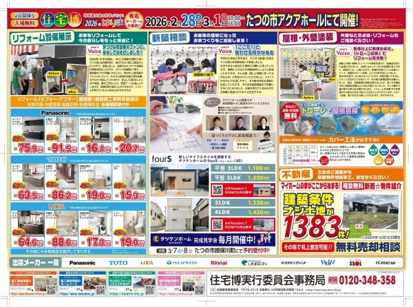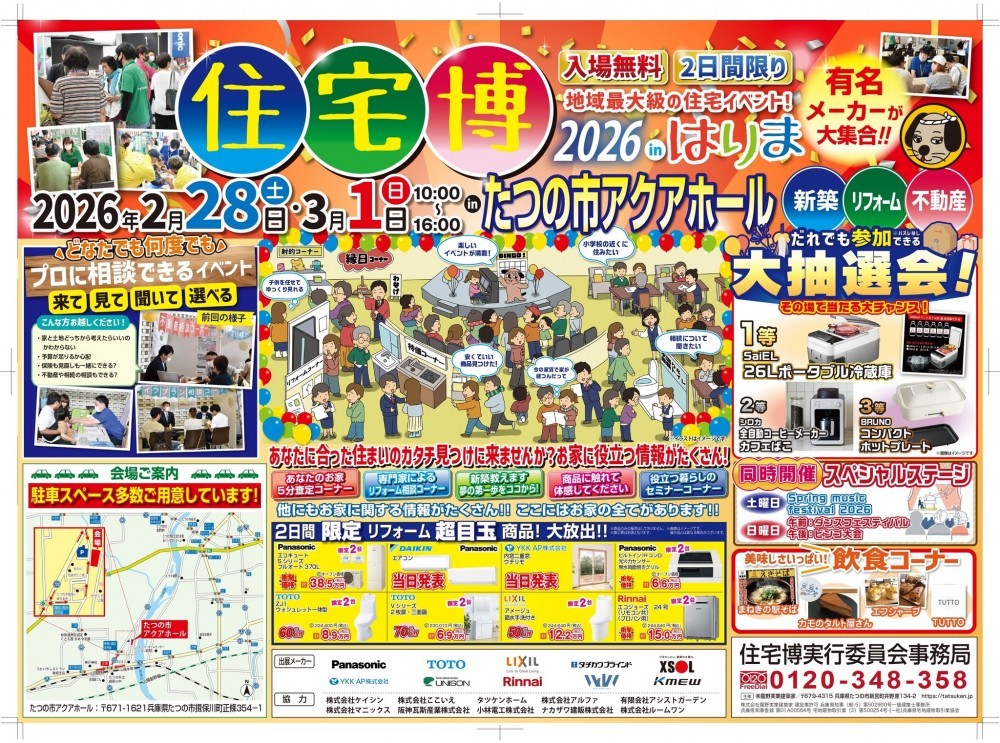 今週末の2月28日(土)・3月1日(日)、たつの市アクアホールにて「住宅博2026」が開催されます 。